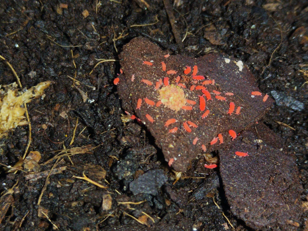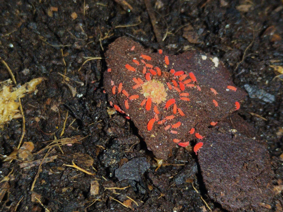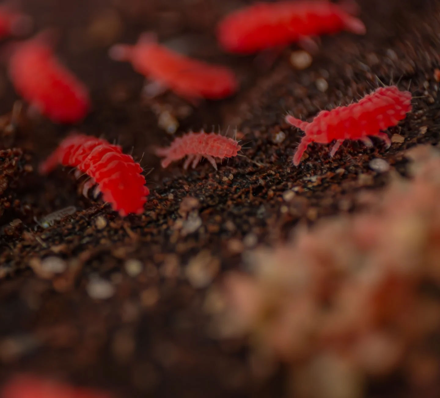 • 🟥 Striking red coloration – far more visible than standard white springtails.