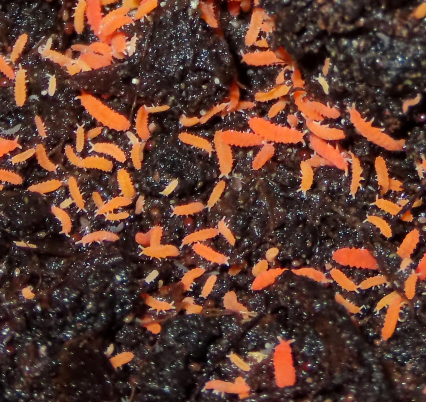 At Springtails.eu we maintain captive-bred cultures of Yuukianura aphoruroides, selected for stability and strong reproduction under bioactive conditions. This species is an excellent choice if you want a serious, soil-focused cleanup crew instead of a cloud of jumpers running over the glass.